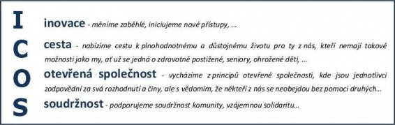 Ve své činnosti vycházíme z principů otevřené společnosti, kde jsou jednotlivci zodpovědní za svá rozhodnutí a činy, ale s vědomím, že někteří z nás nemohou bez pomoci druhých žít důstojným a plnohodnotným životem. Naším cílem je zajišťování co nejkvalitnějších a navzájem propojených služeb a programů, které odpovídají konkrétním potřebám regionu a jeho obyvatel a podporují soudržnost komunity i zapojování lidí do komunitního života.